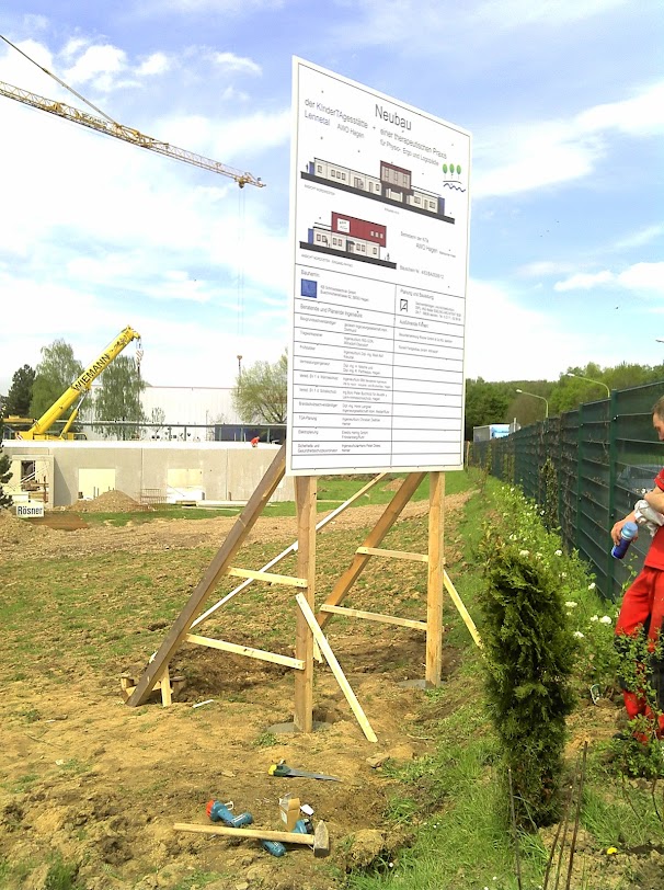 Gerne übernehmen wir auch die Montage der Schilder – auch feste Gerüstelemente aus Stahl zur Selbstmontage haben wir auf Lager.